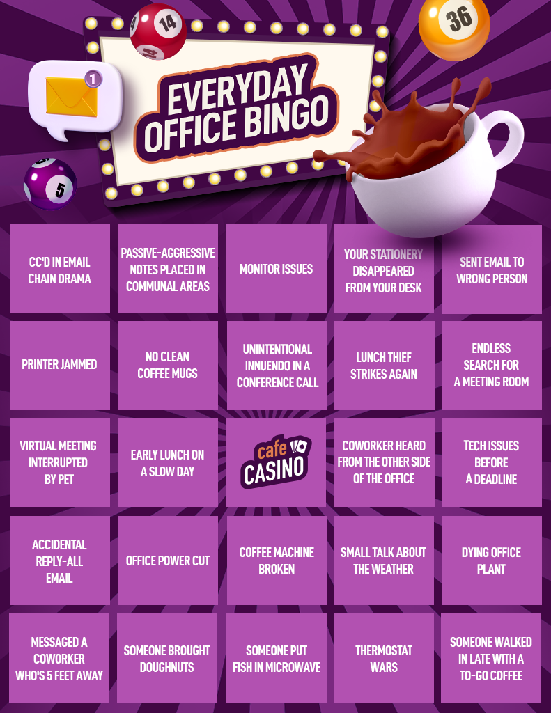 Because you know the scene: you’re quietly sipping coffee in the breakroom, then bam! The printer jams, someone steals your potato salad, and a coworker asks about your “bandwidth.” It’s all fun and games until someone CCs the entire department on an email meant for one person. So you know what? You might as well turn it all into an actual game, like a bingo game.
