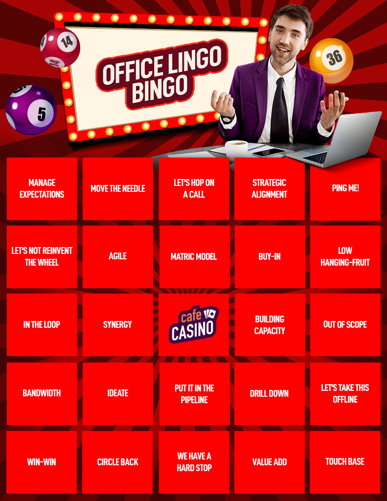 And hey, if your team loves bingo this much, take it to the next level. Refer a coworker to play real bingo with you at Cafe Casino and earn a cash referral bonus for each one who signs up. At least you’ll have something else to discuss in the breakroom. This article could have been an email… but it’s bingo now. Print them out, play for free, and move the needle on your office relationships. When 5 PM strikes, head to Cafe Casino to touch base and play bingo for real.