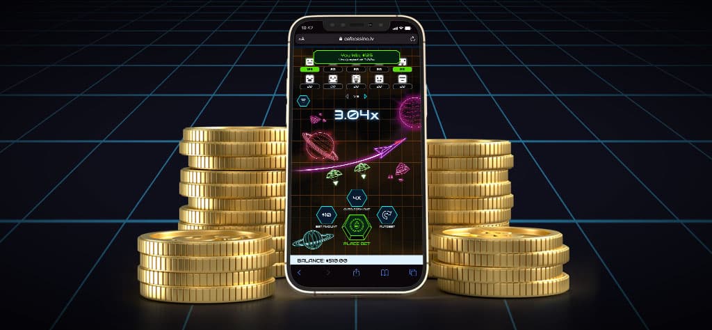 Your craft launches from an orbiting spaceport to rise among the flaming asteroids, satellites, moons, space walkers, and planets. Any one of them can bring your flight to a fiery end. But as you gain altitude, the multipliers grow! You’ve got two tools to keep soaring: luck and smart wagering. Continue flying through the field of potential threats and cash out at the right moment to pocket the accumulated winnings. Crash and burn or cash in and return to play again! That’s what Thundercrash arcade game at Cafe Casino is all about!