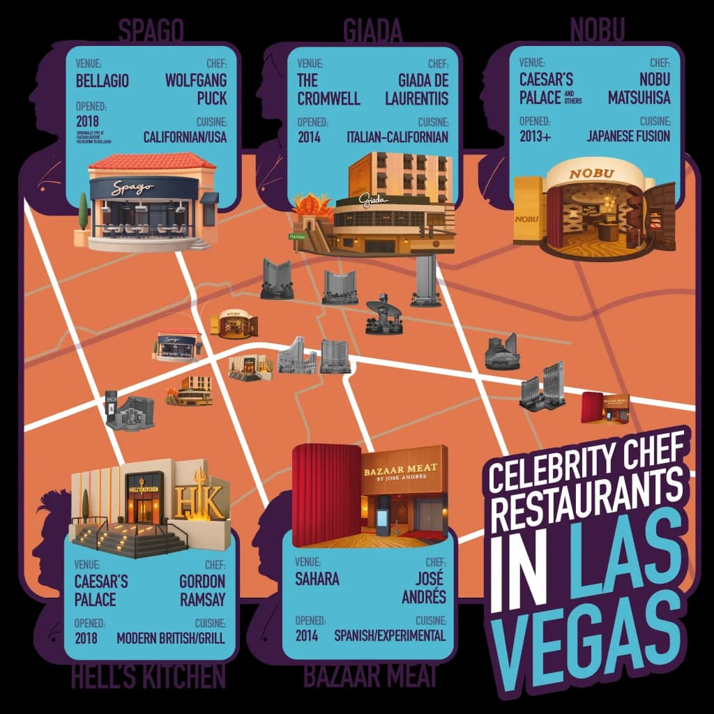Gordon Ramsay has a whole collection, including the always-booked Hell’s Kitchen at Caesars, which mirrors his hit TV show down to the dramatic lighting. Wolfgang Puck, a pioneer in casino fine dining, brought Spago back with a new Bellagio location. José Andrés runs everything from fine dining to fun bars, and Nobu Matsuhisa’s sushi spots are now a staple inside Caesars properties and beyond.