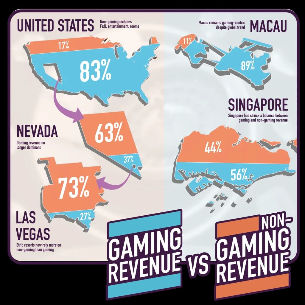 In Las Vegas and beyond, food has become one of the biggest draws in the casino world. Celebrity chefs now run multi-million-dollar kitchens just steps from the gaming floor. Brunch service feels like a five-star event. And the numbers back it up. In 2022, non-gaming revenue in U.S. casinos (which includes dining, drinks and entertainment) hit nearly 17% of the total take, that’s over $20 billion spent on everything but cards and slots.